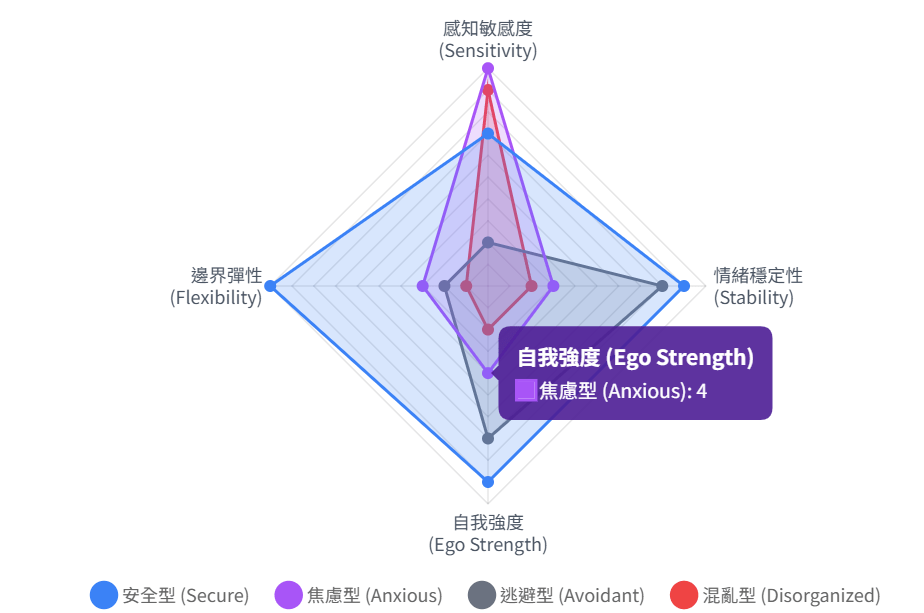 - 特徵:邊界極薄,渴望連結,神經系統對「拒絕」高度敏感。